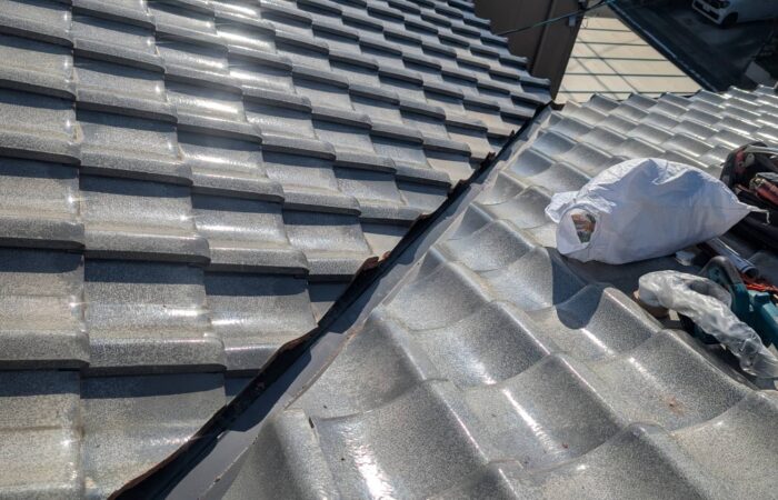 本日は 毎度おなじみの屋根修理作業 の様子をご紹介します。今回の工事は、雨漏りの原因として非常に多い 谷樋(たにどい)の張り替え です。